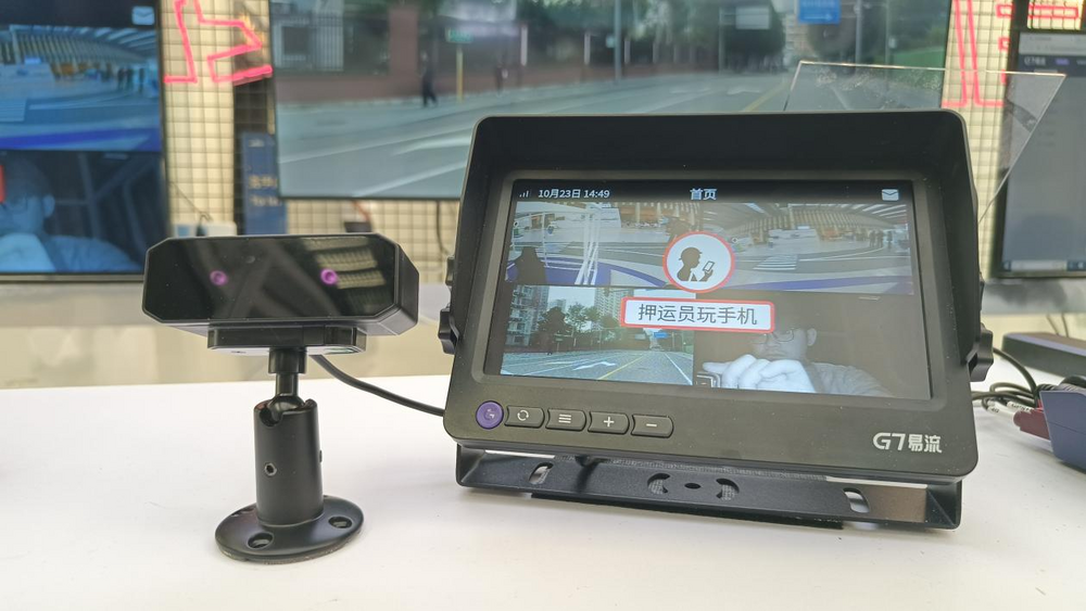 面對(duì)行業(yè)變革,G7易流推出了首款A(yù)I硬件產(chǎn)品——紫寶盒,旨在幫助企業(yè)邁出AI轉(zhuǎn)型的第一步。這款“All in One”超級(jí)網(wǎng)關(guān)集成了車上所有感知設(shè)備,包括攝像頭、傳感器及其他品牌硬件,實(shí)現(xiàn)數(shù)據(jù)的統(tǒng)一收集與傳輸。同時(shí),它還具備強(qiáng)大的端側(cè)算力,可對(duì)數(shù)據(jù)進(jìn)行實(shí)時(shí)識(shí)別與判斷,并直接執(zhí)行操作。例如,當(dāng)檢測(cè)到司機(jī)打電話、抽煙或打哈欠等危險(xiǎn)行為時(shí),系統(tǒng)會(huì)立即發(fā)出警報(bào)?,F(xiàn)場(chǎng)測(cè)試顯示,其響應(yīng)速度僅需約1秒。