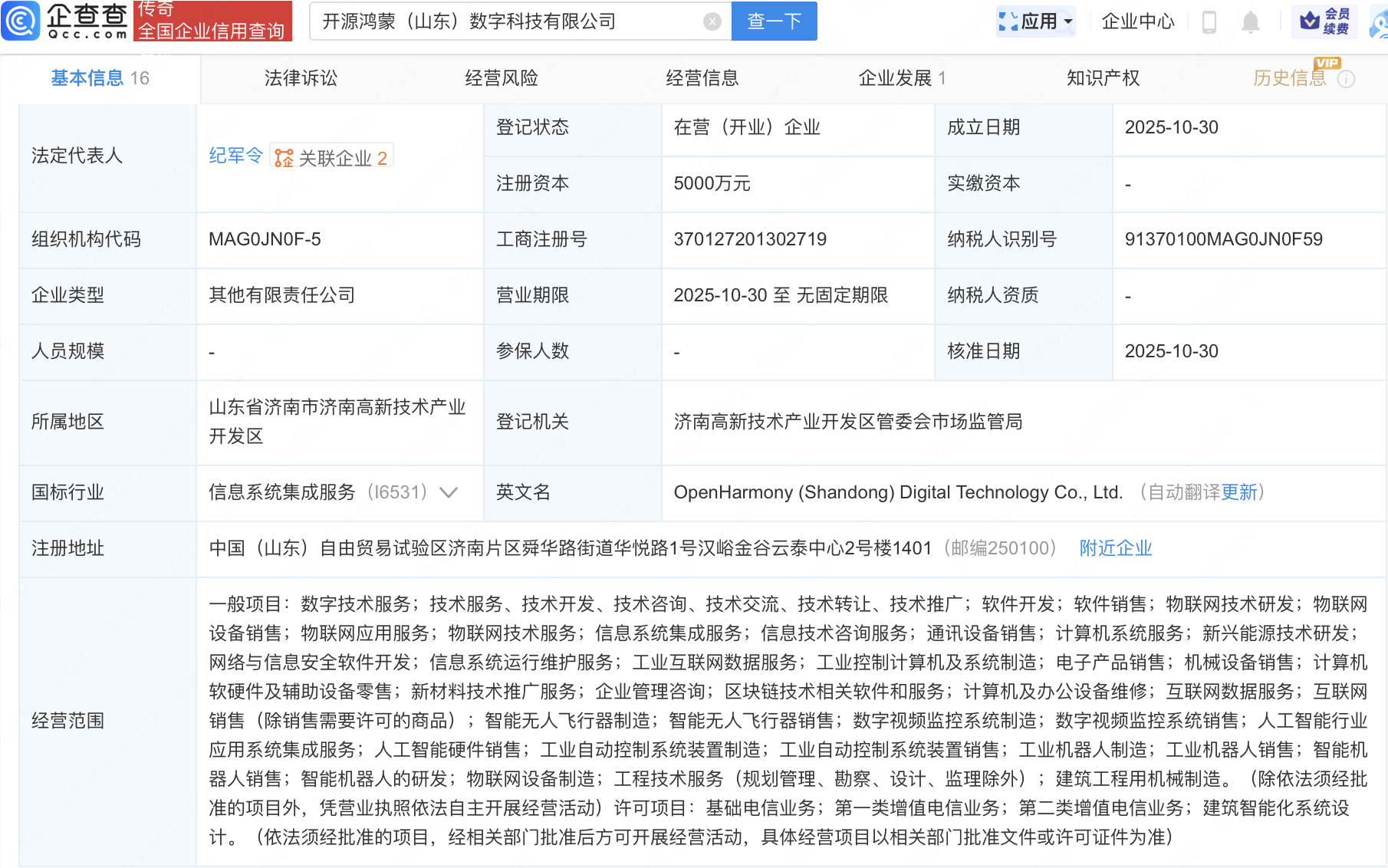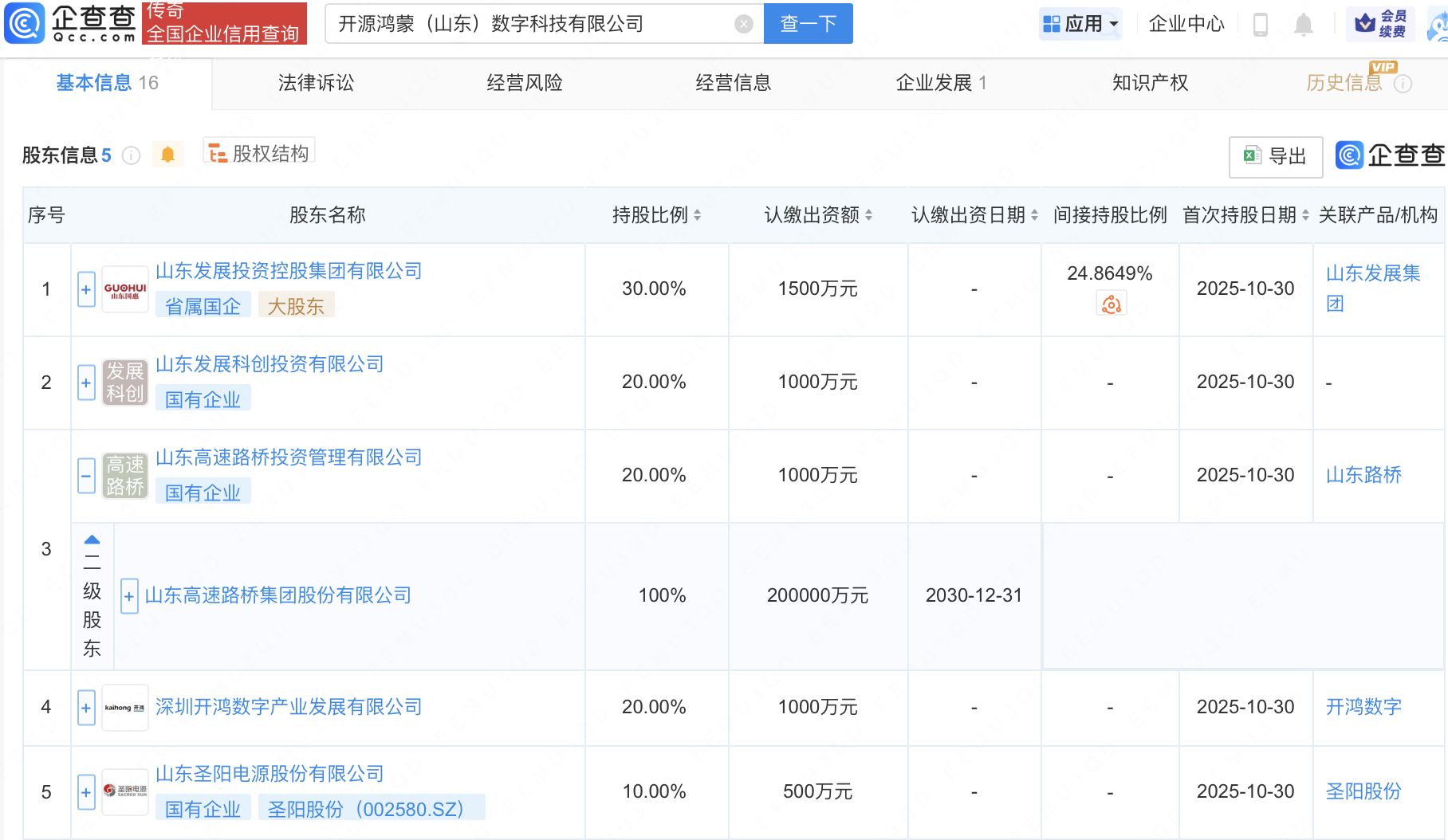 企查查APP顯示,近日,開源鴻蒙(山東)數(shù)字科技有限公司成立,注冊(cè)資本5000萬元,經(jīng)營范圍包含:智能無人飛行器制造;人工智能行業(yè)應(yīng)用系統(tǒng)集成服務(wù);人工智能硬件銷售;智能機(jī)器人銷售;智能機(jī)器人的研發(fā)等。企查查股權(quán)穿透顯示,該公司由山東路橋(000498)全資子公司山東高速路橋投資管理有限公司、圣陽股份(002580)等共同持股。