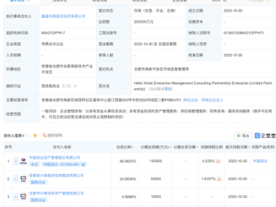 企查查APP顯示,近日,九州產(chǎn)投(廣東橫琴)運(yùn)營管理有限公司成立,法定代表人為蘇熙凌,注冊資本為1000萬元,經(jīng)營范圍包含:企業(yè)管理;科技中介服務(wù);工程管理服務(wù);園區(qū)管理服務(wù);企業(yè)管理咨詢;信息技術(shù)咨詢服務(wù)等。企查查股權(quán)穿透顯示,該公司由九州通(600998)間接全資持股。