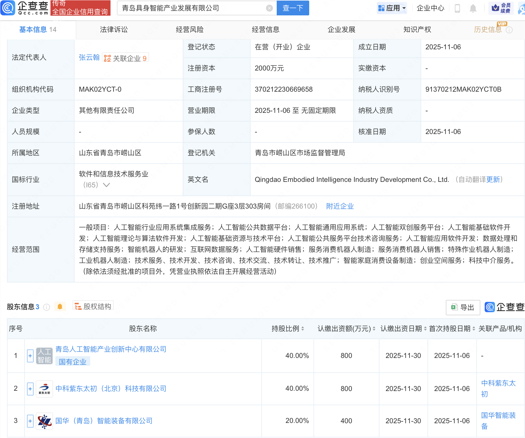 青島具身智能產(chǎn)業(yè)發(fā)展公司注冊(cè)成立